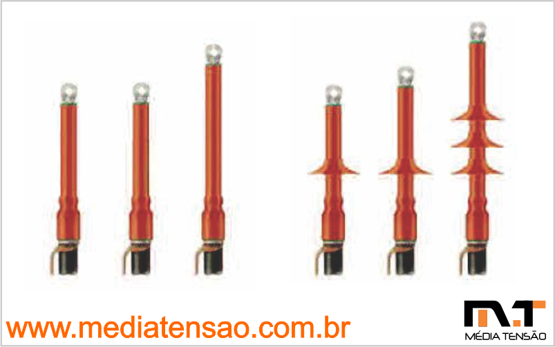 Terminal termocontrátil HVT I (uso interno) ou HVT E (uso externo) de 15 a 36kV até 630mm2